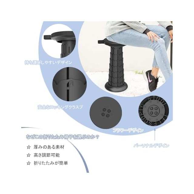 商品名:BTtime 折りたたみ椅子 おりたたみいす 折り畳み椅 子 キャンプ椅 子 伸縮式 キャンプスツール 高さは9-52cmまで調整可能 1秒開閉 耐荷重180kg 軽量 コンパクト 持ち運び便利 ハイキング/アウトドア キャンプ/釣り/BBQ/踏み台/運動会/花火大会/屋内用 (ブラック)