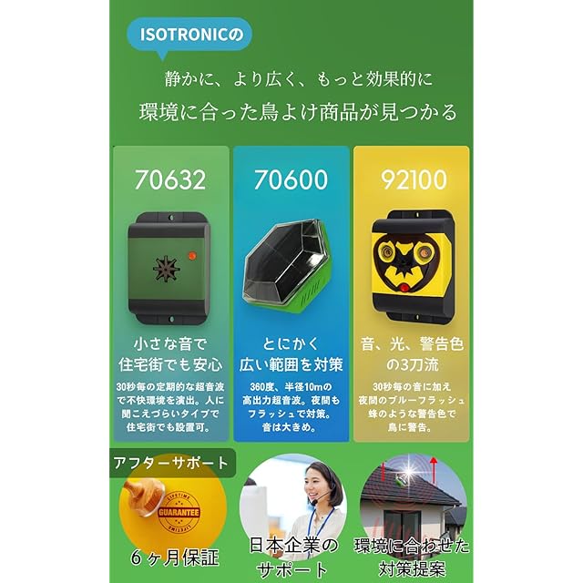 ISOTRONIC カラスよけ 鳩 鳥 防水 超音波撃退器 電池式でベランダなどどこでも設置 吊るせる 有効範囲40m2 70628