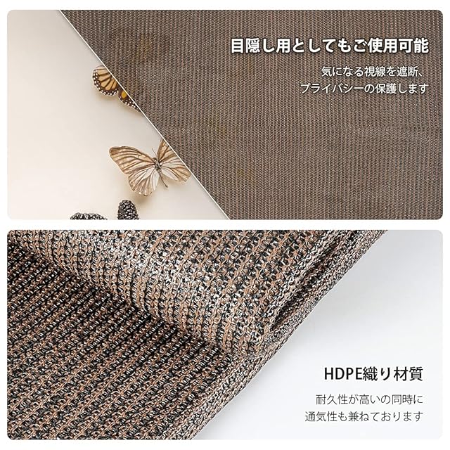 【通気性よい素材】日よけ止めシェードは通気性があり、透けて見えない高密度HDPE素材を採用して、熱い風は庭日除けシェードを通して、涼しい風に変えます。風通しサンシェードはシェードの内側を涼しくします。夏でも外で快適に過ごすことができます。窓サンシェードの素材は形状記憶加工を施し、長年でも変形や色褪せしにくい、美しい外観を保ちます。