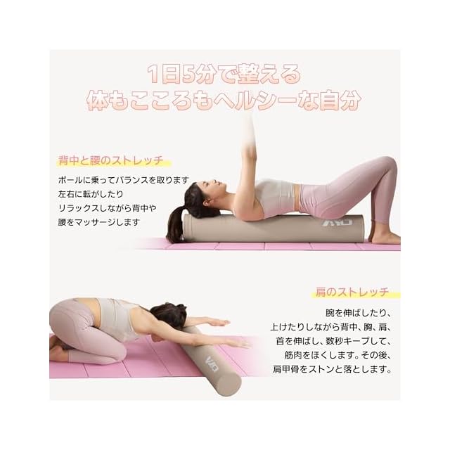 【姿勢矯正&ストレッチ効果】AYOのストレッチポールは独自設計の100cmロングタイプで、骨盤と背骨を理想位置に誘導きます。日本人男性の平均肩幅に合わせた業界最長級サイズ!ポール上に横たわるだけで自然に背筋が伸び、肩こり・腰痛の緩和、自然と姿勢を良くすることができます。男女問わず上半身を安定して預けられる設計です。