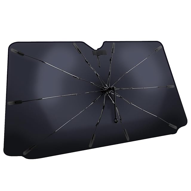 スヌーピーデザインの折りたたみ傘型サンシェード!パッと開いて簡単セット!