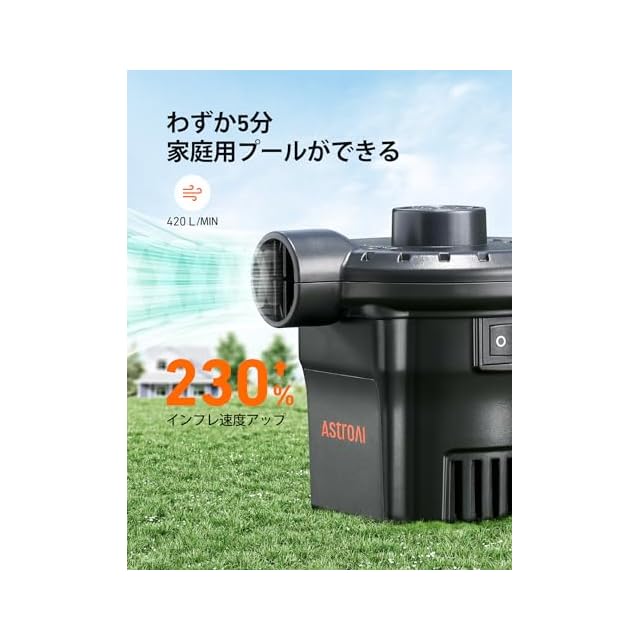 商品名:AstroAI 空気入れ プール AC電源/DC電源/充電式バッテリー給電 tiny pump 電動エアーポンプ タイニー ポンプ 空気抜き 両対応 3種類のノズル付き PSE認証済み 小型浮き輪 ゴムボート エアベット ビニール ブール適用