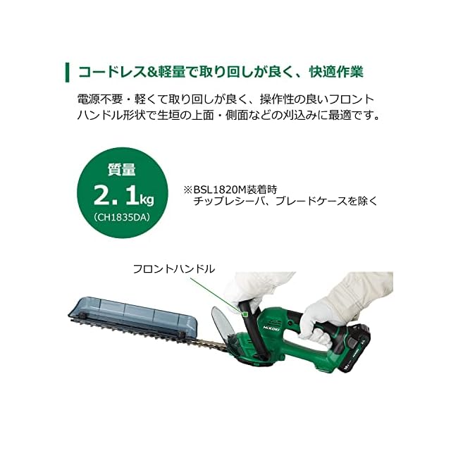 HiKOKI(ハイコーキ) 18V 充電式 ヘッジトリマー 植木バリカン 刈り込み幅 350mm 切断径15mm 2.0Ah蓄電池・充電器付き CH1835DA(BG)