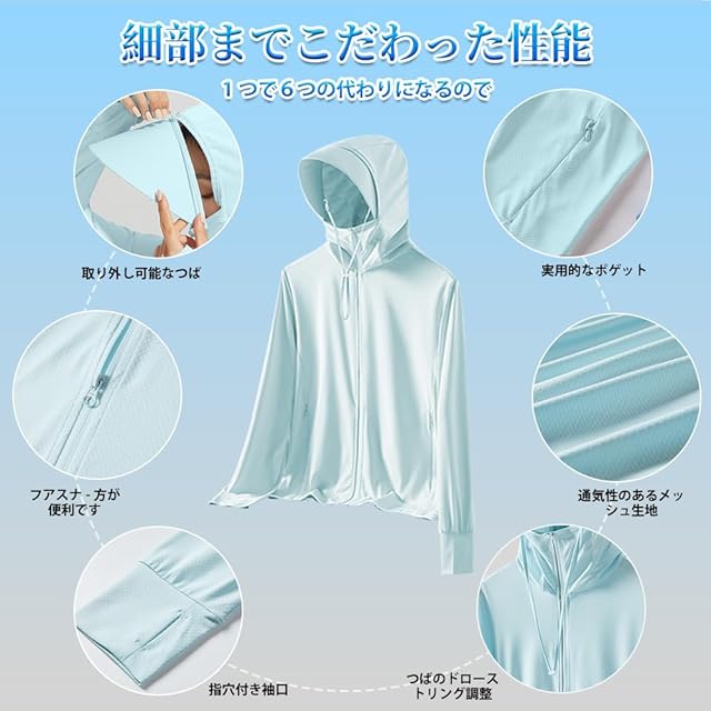 【細部までこだわった性能】この帽子は取り外し可能なデザインにアップグレードされ、より広いつばと高いネックラインにより、日焼け防止エリアを広げ、直射日光から多角的に保護し日焼けを防ぐ。レディースタイプはフードの後ろにはファスナーが付いて、ハイポニーテールを出す可能、蒸れを気にすることなく着用いただけます。指穴付きになったデザインで、手の甲をしっかり覆うことができます。