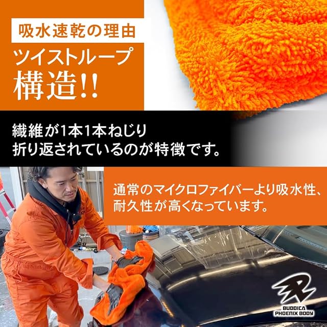 【BUDDICA PHOENIX BODY】フェニックスドライ 『一発で仕上げる。』車一台丸ごと拭き上げられる大判タオル 洗車 タオル バディカ クロス マイクロファイバー 一発拭き取り 超吸水