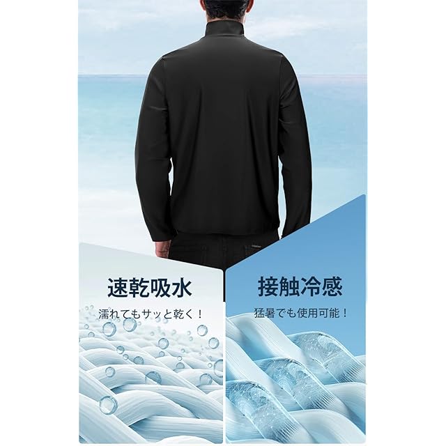 【接触冷感・速乾】通気性抜群の素材で、触れるとひんやりと冷たい接触冷感で夏場も紫外線対策をしながら涼しさを感じられます。中の蒸れを外に逃がす透湿素材の高機能ラッシュガードです。