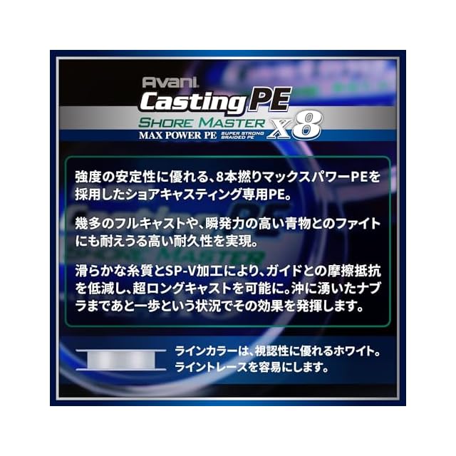 商品名:VARIVAS(バリバス) PEライン アバニ キャスティングPE マックスパワー X8 ショアマスター 200m 1号 20.2lb 8本 ホワイト