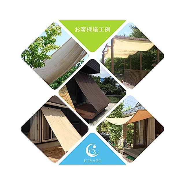 HIRARI バルコニー シェード 耐久性に優れた高密度ポリエチレン使用、通気性や遮光性に優れ、シェードの内側を涼しくします。有害な紫外線も90%カットするので。専用な取り付け金具でベランダや窓ペ、廊下、庭下、庭先、玄関などに簡単に取り付けることができます。お洒落な洋風デザインなので、日よけだけでなく、ご自宅やお庭のエクステリアとしてもご利用なれます。