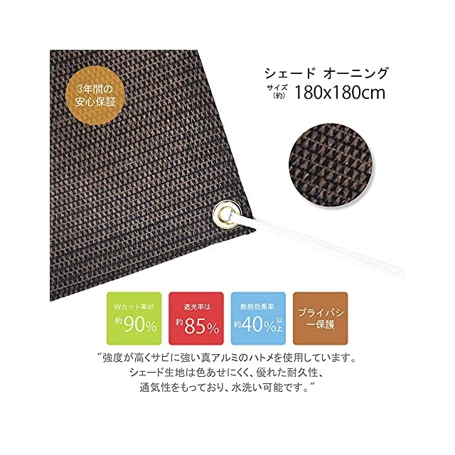 商品名:HIRARI 日よけ シェード 日除け シェード オーニング 簡単設置 (180×180cm) モーカ