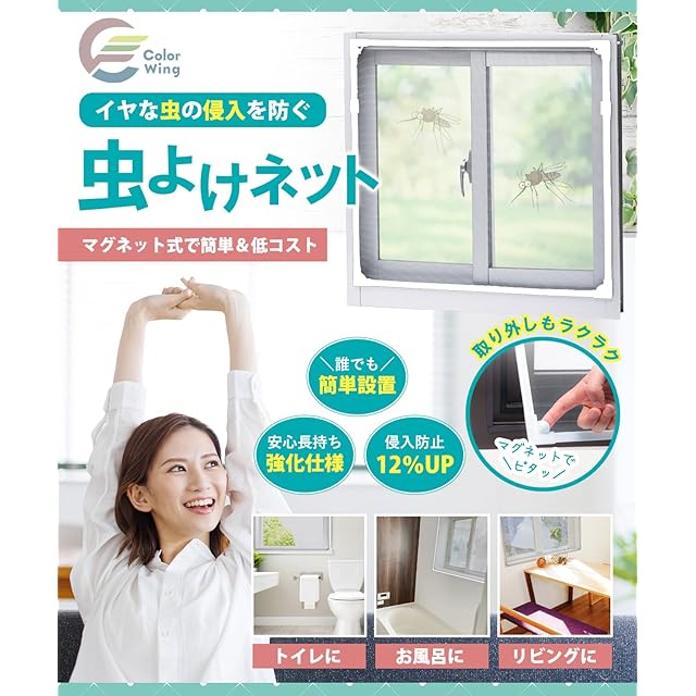 商品名:ColorWing マグネット式 DIY 網戸キット 【網目の細かさUP!】 小窓用 簡易網戸 虫除け ネット (枠:ホワイト, 100cm×100cm)