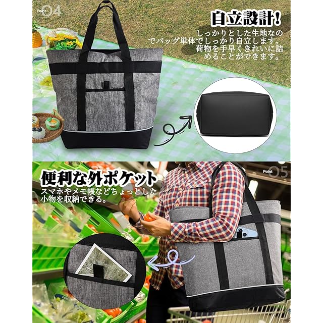 【冷たさを長時間キープ】 保冷バッグ クーラーバッグ 大容量 30L 自立 おしゃれ 買い物バッグ トートバッグ 手提げと肩掛け両用 保冷 保温 4層断熱 軽量 折りたたみ アウトドア キャンプ ピクニック