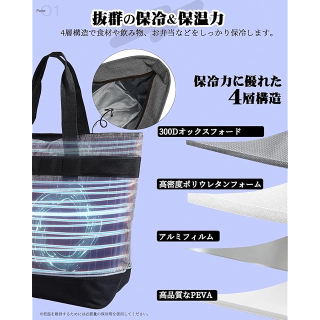 【優れた保冷&保温力】AMZHOOZの保冷バッグは冷気を逃しにくい4層構造になっています。外気の熱が中に入り込みにくく長時間に渡って低温を維持でき、保温・保冷に最適な保冷機能付きクーラーバッグです。外生地はキャンプ用品に使用される300Dォックスフォードを採用し、耐久性も抜群です。