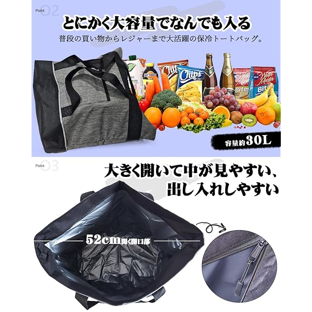 商品名:【冷たさを長時間キープ】 保冷バッグ クーラーバッグ 大容量 30L 自立 おしゃれ 買い物バッグ トートバッグ 手提げと肩掛け両用 保冷 保温 4層断熱 軽量 折りたたみ アウトドア キャンプ ピクニック