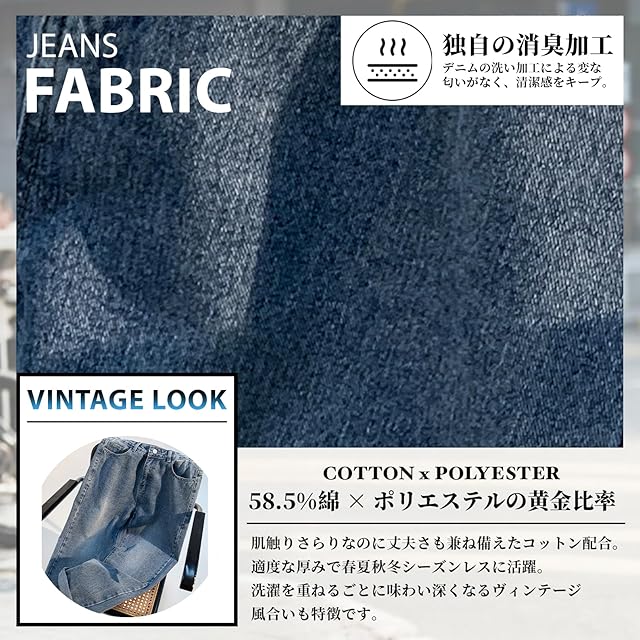 【プロ仕様のヴィンテージウォッシュ】ストーンウォッシュ、サンドウォッシュ、ひげ面加工の3種類からお選びいただけます。職人レベルに近いの風合いを調整し、本物のヴィンテージジーンズのような味わいを再現。トレンドに左右されない「アジのある色落ち」が、長く愛用できる理由です。