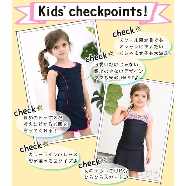 セット内容・2点セット・トップス・スカート スクール水着風デザインでシンプル可愛い☆露出も少なめ◎ 日焼け対策 可愛い女の子水着【商品詳細】・ジッパー:なし・ウエスト調節:なし・金属パーツ:なし・プラスチックパーツ:なし