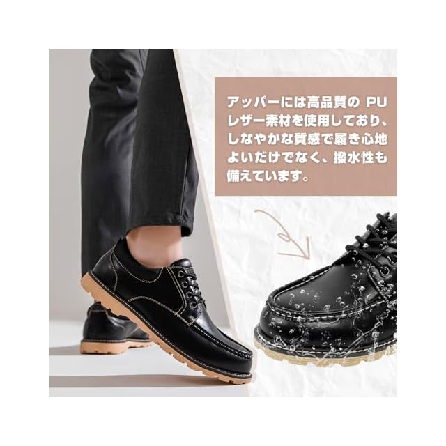 【上質な素材】当製品は高品質な人工皮革を使用しています。精巧な加工により、本物の皮革と見紛うような質感を実現し、快適性とスタイリッシュさを両立させています。しかも、軽量設計であり、26cmにより片足は385gです。
