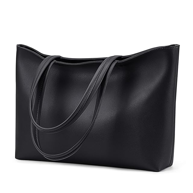 [KALIDI] トートバッグ ショルダーバッグ 大容量 レディース メンズ 肩掛けバッグ 大きめ エコレザー 合皮 シンプル 無地 A4 横型 男女兼用 ビジネス 内ポケット有り ファスナー付き (ブラック)