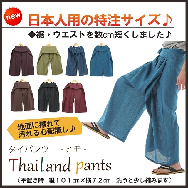 伝統式のタイパンツ。メンズレディース両用のユニセックス仕様。袴パンツ・フィッシャーマンパンツとも呼ばれます。
