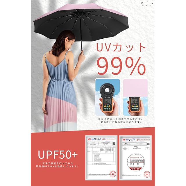 ✅【 99%UVカット/ UPF50+ 】季節問わずにUVは肌の敵です。この折り畳み傘は日傘として99%UVカットに加え、UPF50+の機能性を工場にて認可されており、紫外線から肌を守流ことができる日傘です。