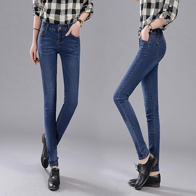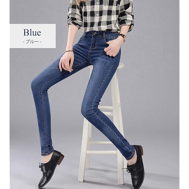 [Teddy] デニムパンツ スキニー ジーンズ レディース ハイウエスト ロング丈 薄手 ストレッチ ストリート pants387 (ブルー, S(26サイズ))