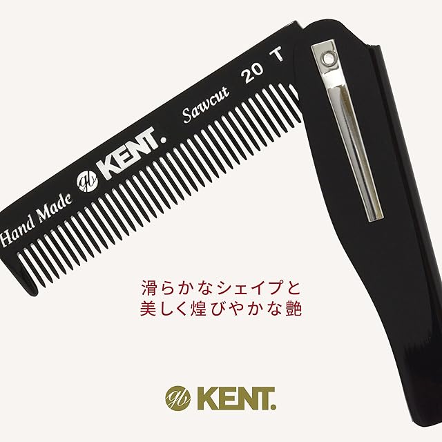GB KENT ケントブラシ ハンドメイド 折りたたみヘアコーム 167mm 英国王室御用達 天然由来 静電気抑制 持ち運び クリップ付き 20TBL (ブラック)