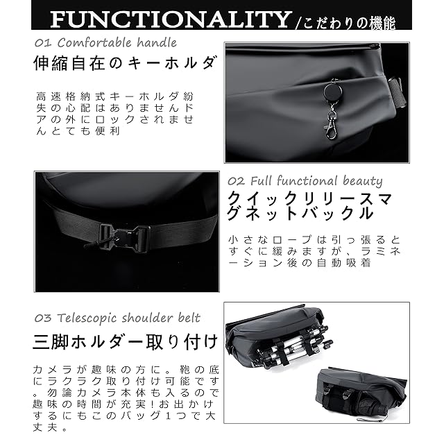 【洗練されたデザイン】ベーシックなシンプルデザインを追求して、どんな服装にも合うショルダーバッグに仕上がりました。私服での通勤、通学、休日のラフな格好、子育て世代のお父さんまで、幅広い服装に合う機能美ショルダーバッグです。