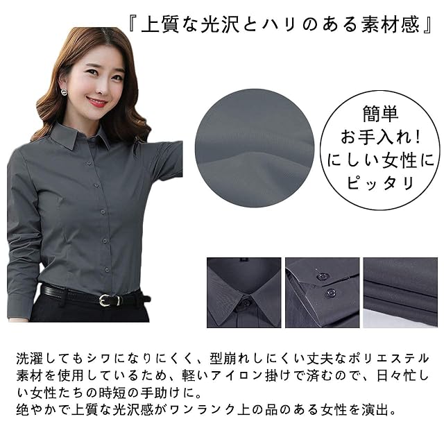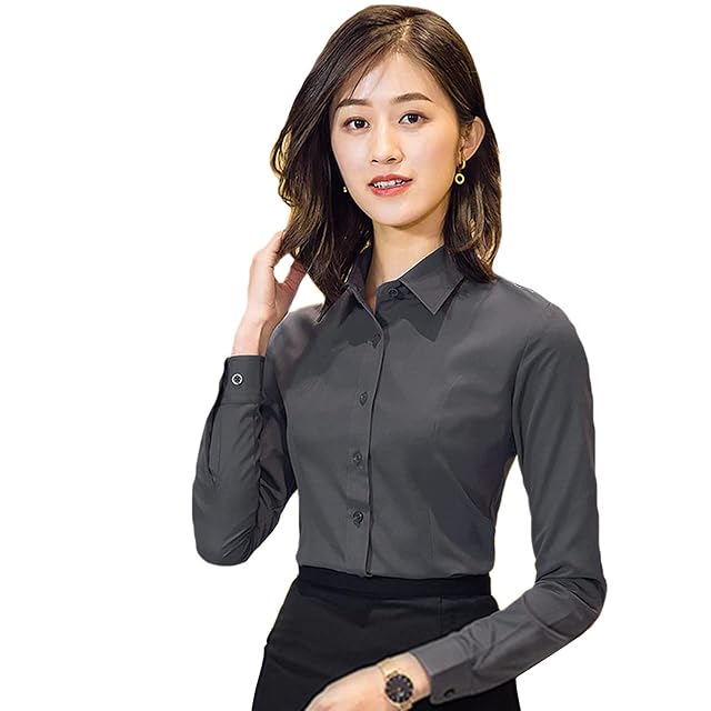 [SIPERLARI] ブラウス シャツ レディース 通勤 長袖 就活 オフィス シャツ 可愛い 形態安定 カジュアル おしゃれ 着痩せ 黒 白 ビジネス レギュラー シャツ スキッパーシャツ(グレー 38)
