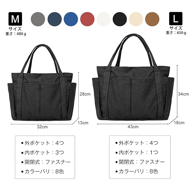 [imeetu] トートバッグ キャンバス 肩掛けバッグ レディース メンズ A4対応 通勤 通学 帆布 大容量 多機能 無地 (Ⅿサイズ カプリブルー)
