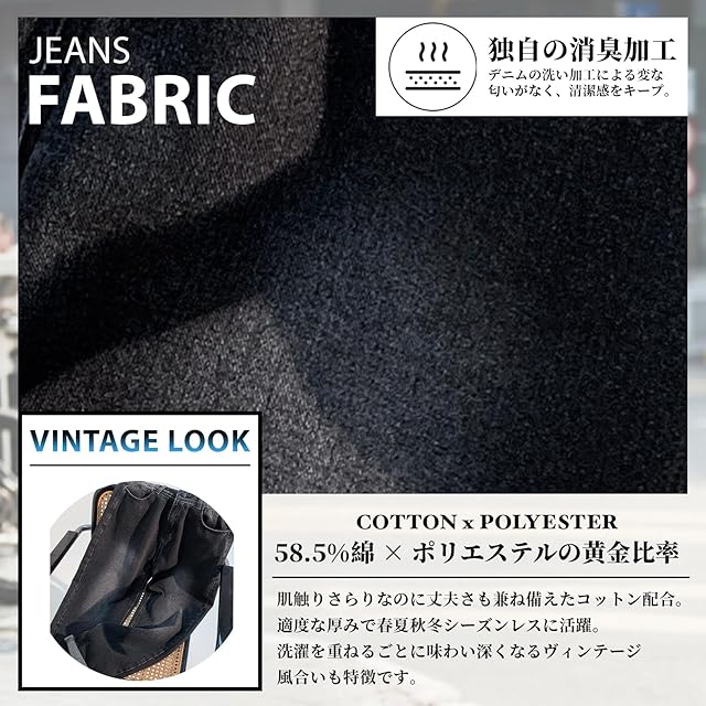 【58.5%綿 × ポリエステルの黄金比率】58.5%のコットンを使用し(ジェットブラックは50%)、肌に優しい柔らかさと耐久性を両立。適度なポリエステル配合で型崩れしにくく、四季を通じて快適に着用可能。独自の消臭加工で汗ばむ季節も清潔感をキープ。洗濯を重ねるごとに味わい深くなるヴィンテージ風合いが特徴です。