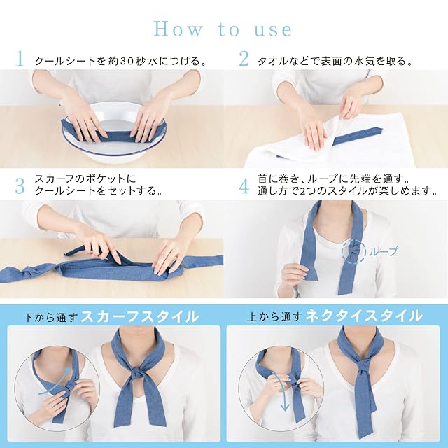 サイズ : 幅4.5×長さ82cm(スカーフ)、幅4.3×38cm(クールシート)