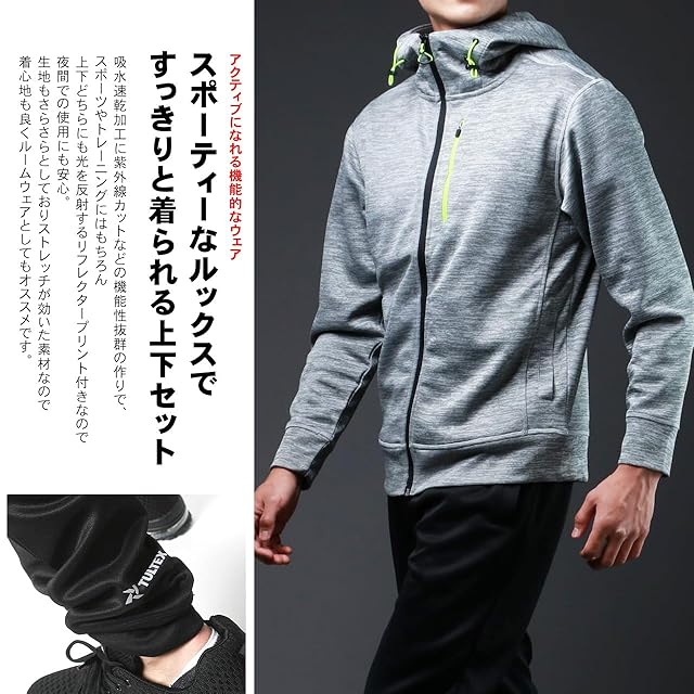 TULTEX タルテックス ランニングウェア ジャージ 上下セットを御紹介します。アウトドアやスポーツ、ストレッチ素材で着心地がよく部屋着としてもご利用頂けます。吸水速乾加工やUVカットやリフレクターなど機能性抜群の作りで、ランニングやスポーツなど様々なシーンで活躍します。上下別々にも使うことができシンプルなデザインで幅広いコーディネートが可能です。