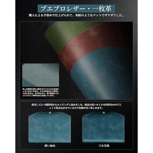 [Kawaoto] 名刺入れ メンズ プエブロレザー 本革 日本製 名刺ケース 薄型 25枚収納 名刺が折れない ビジネス 就職祝い クリスマス (緑青色)