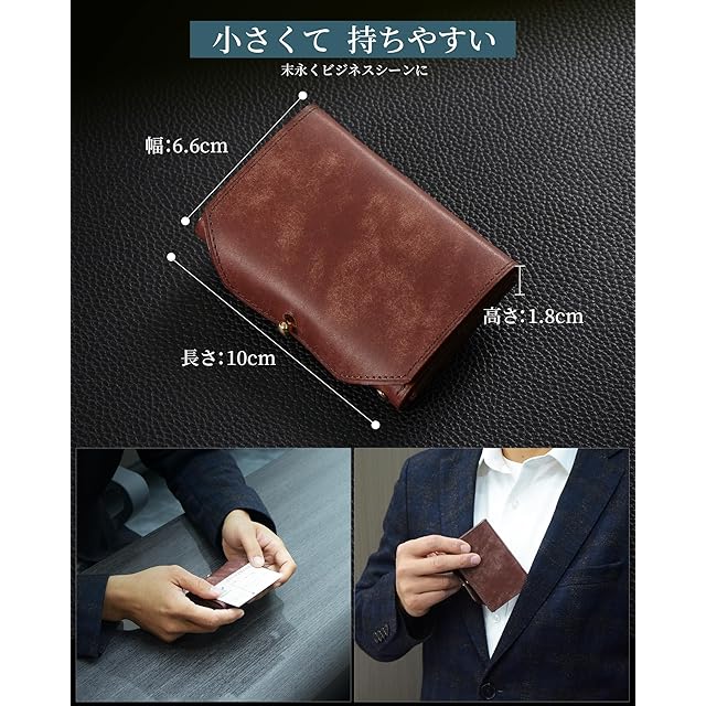 【名刺入れ 薄型】メンズ名刺入れはスリムながらしっかり収納できる構造で、25~30枚の名刺が収納可能で収納後の薄さはわずか2cmです。サブポケット付いて、ご自分の名刺とICカードを分けて収納することができます。初対面のビジネスミーティング、懇親会、商談、展示会などビジネスシーンにおいて欠かせない名刺入れです。
