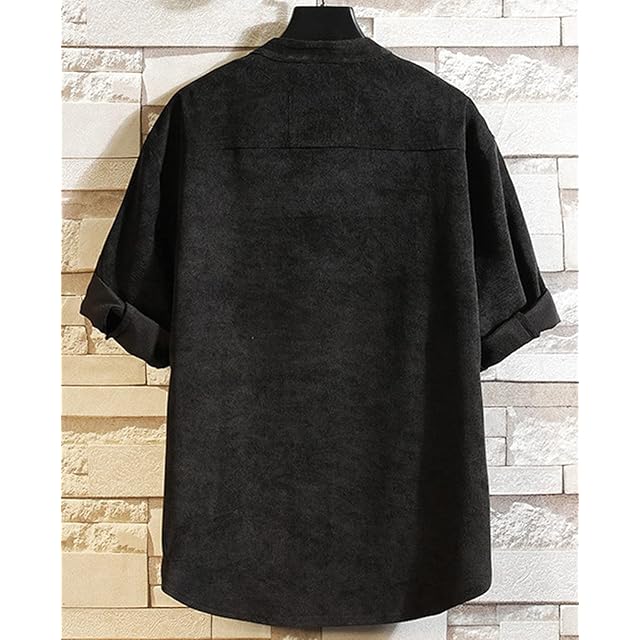 シンプルな無地デザインと立衿のデザインで、カジュアルだけでなくビジネスのインナーとしても愛用できるメンズ半袖シャツです。