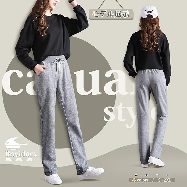 [Rovidorx] スウェットパンツ レディース 綿100 ズボン ロングパンツ ボトムス ワイドパンツ カジュアル 美脚 無地 春秋 ポケット付き 体型カバー Royc081-dgr-3XL(=日本サイズ2XL)