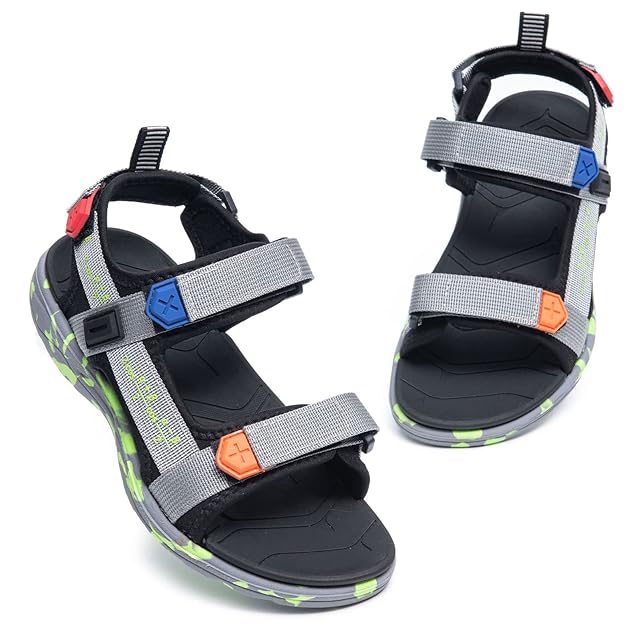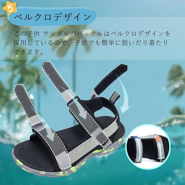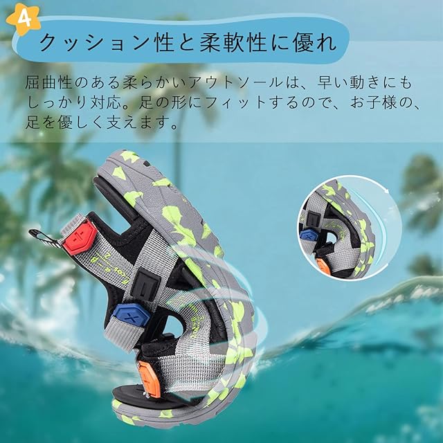 [FFIBU] サンダル 男の子 子供 キッズサンダル スポーツサンダル 水陸両用 子供用サンダル ビーチサンダル 子ども ジュニア 履きやすい おしゃれ 滑り止め グレー 19.5cm
