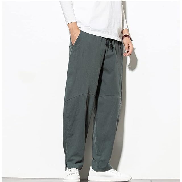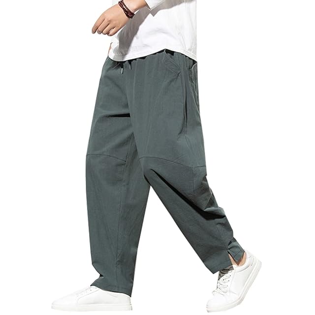 [Platilive] ズボン メンズ リネン サルエル メンズ オーバーサイズ ワイドパンツ リラックスパンツ 大きいサイズ ゆったりボトムス 調整紐 ズボン ウエストゴム パンツgray M