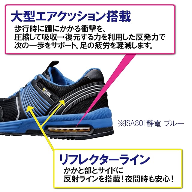 [規格] JSAA認定 A種(普通作業用)人工皮革製プロスニーカー/踵衝撃吸収/耐滑/静電