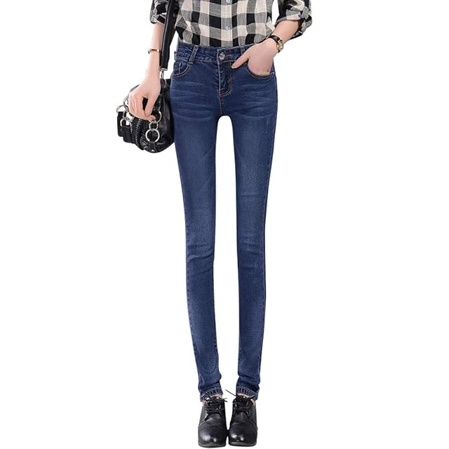 [Teddy] デニムパンツ スキニー ジーンズ レディース ハイウエスト ロング丈 薄手 ストレッチ ストリート pants387 (ブルー, XL(29サイズ))