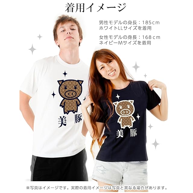 豊天 おもしろtシャツ 美豚 ビブタ メンズ ネイビー L 面白い パロディ ねた