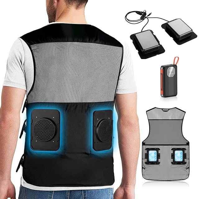 【ペルチェ素子搭載&最大- 40℃速効冷却】ペルチェベスト搭載 2 枚高性能冷却プレート,45W高出力、電源入れて 5秒で最大 - 40℃冷却!小型冷蔵庫同じペルチェ素子とアルミ吸熱で、瞬間全身冷えて体温コントロール。衣服膨らまず、作業服インナーにも使え,屋外作業やアウトドアで暑さ軽減、熱中症予防にも最適です!