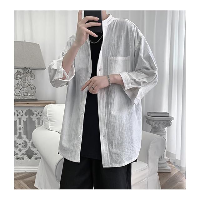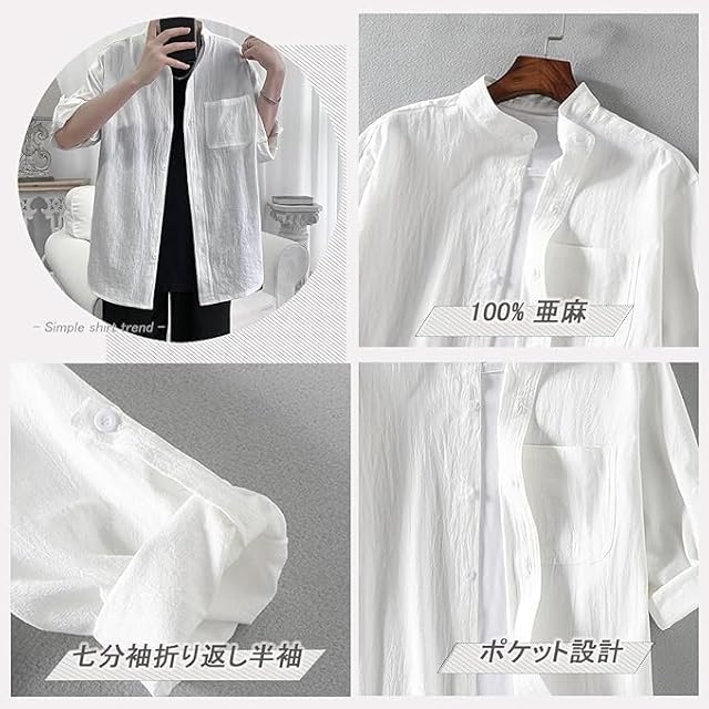 [Anzn] 夏服 シャツ メンズ 七分袖 半袖 ファッション ボタンアップ シャツ 大きいサイズ メンズ 無地 ワイシャツ 人気-bai-M
