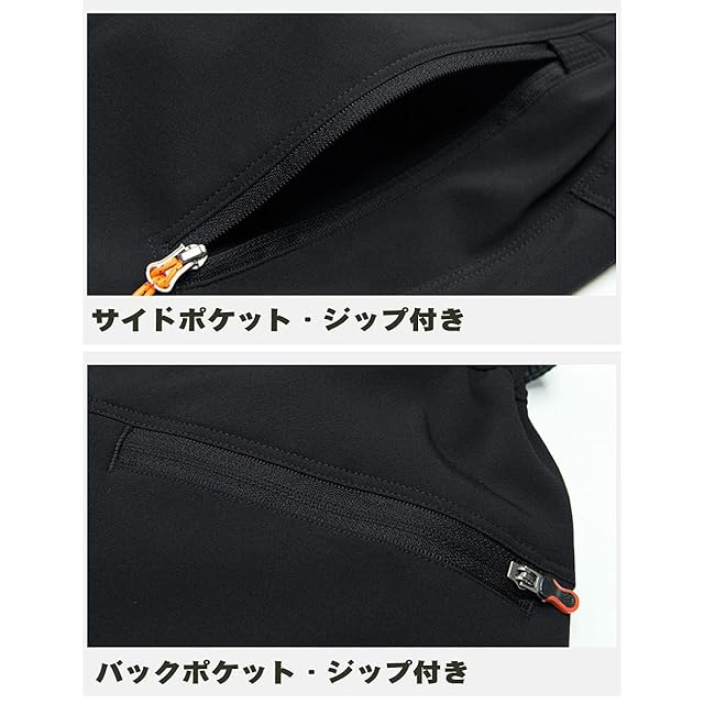 【4つポケット】サイドポケット2つ、太もものポケット1つ、バックポケット1つがあり、すべてのポケットにジッパーが付いていて、安全に物を収納でき、便利に携帯可能です。