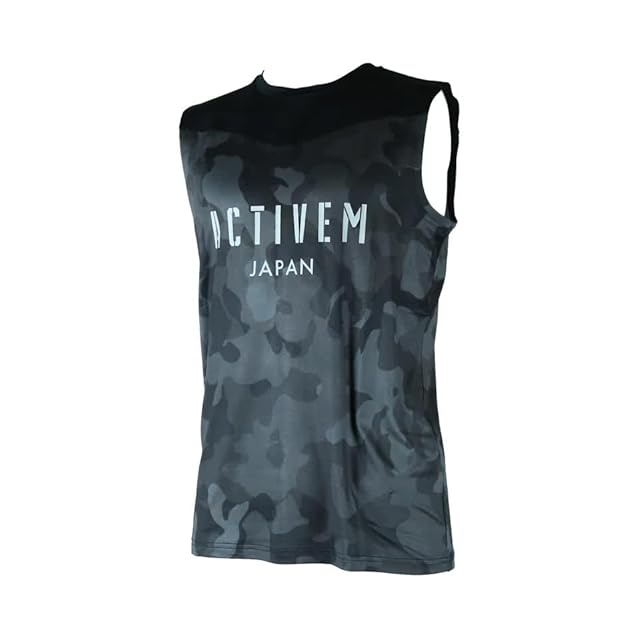 プロ愛用のノースリーブアンダー遂に発売!! 【ゆうパケ 野球 アンダーシャツ アクティブーム ノースリーブ 丸首 ACTIVEM 一般用 インナー 肌着 メンズ カモ柄 軽量 ルーズフィット (L, ブラック)