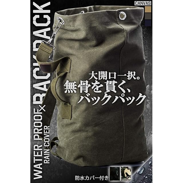 [KIRIRU] ドカッと入る メンズ リュック 帆布 バックパック キャンバス シンプル 大容量 ミリタリー アウトドア 20L 30L 防水 レインカバー 付 (グリーン(雨カバー迷彩), M)