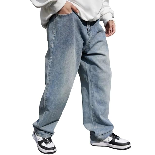 [Fuyumoe] ジーンズ メンズ ワイド デニムパンツ メンズ ズボン ワイド ジーパン 大きいサイズ ゆったり ルーズ イージー (ユーズド ブルー L)