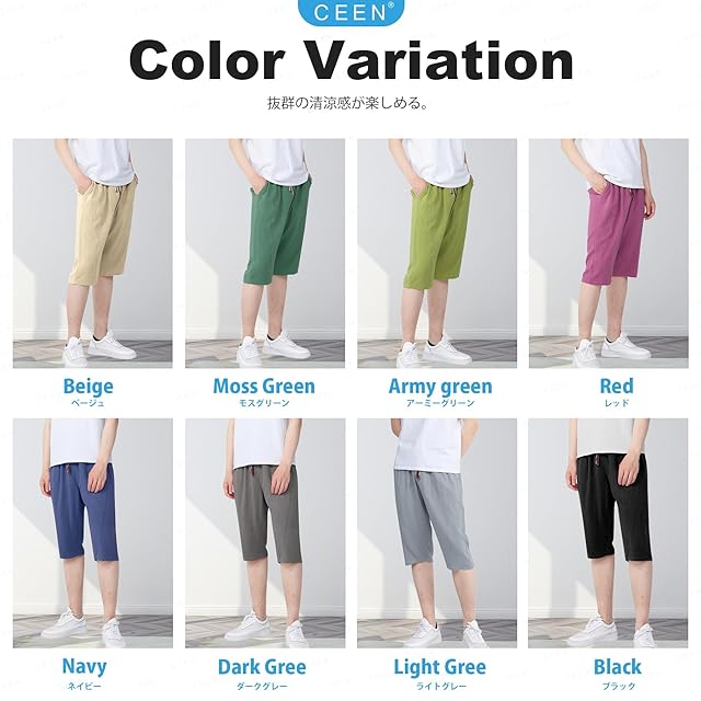 [CEEN] サルエルパンツ メンズ 麻 七分丈 夏服 無地 調整紐 ゆったり 大きいサイズ ハーフパンツ ウエストゴム 薄手 速乾 涼しい ショートパンツ スポーツ 部屋着