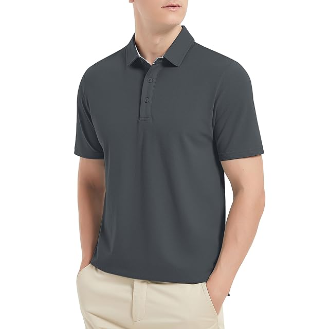 [KEFITEVD] ゴルフウェア メンズ ポロシャツ ビジネス 綿 襟付きシャツ ボタンダウン ポロ 大きいサイズ トップス ゆったり 夏服 tシャツ 吸汗速乾 ダークグレー 3XL