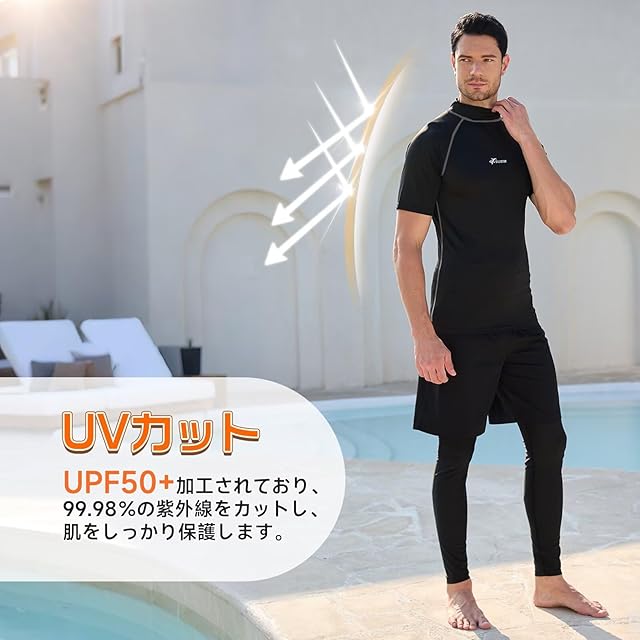 高品質素材と耐久性:丈夫な素材を使用しており、何度着用しても洗濯を重ねても形が崩れにくく、長期間使用できます。サーフパンツやレギンスの膝部分など、重点部分には補強加工が施されており、激しい運動や海水浴の繰り返しにも耐えられます。