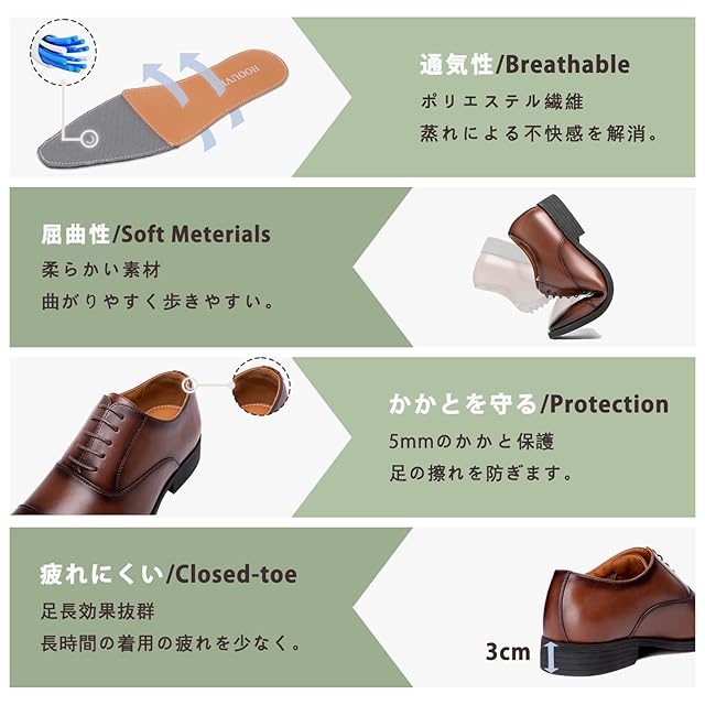 [Hoouvea] 革靴 ビジネスシューズ メンズ 制菌 消臭 紳士靴 防水 通気 走れる ビジネス ドレスシューズ フォーマル シューズ カジュアル 歩きやすい 防滑 防臭 内羽根 高級レザー 結婚式 冠婚葬祭 スーツ靴 就活 普段 通勤 3E ブラウン 26cm